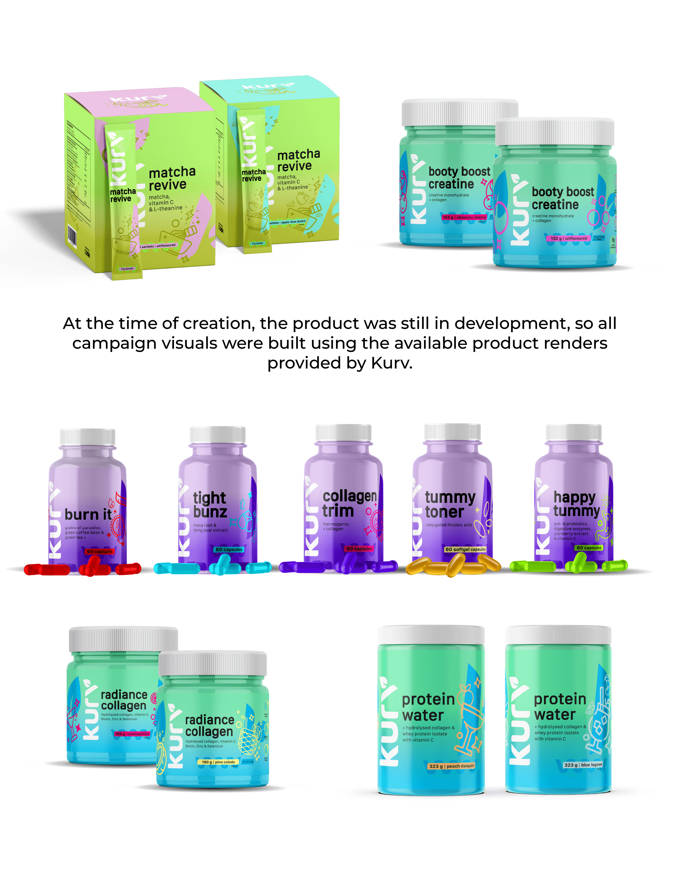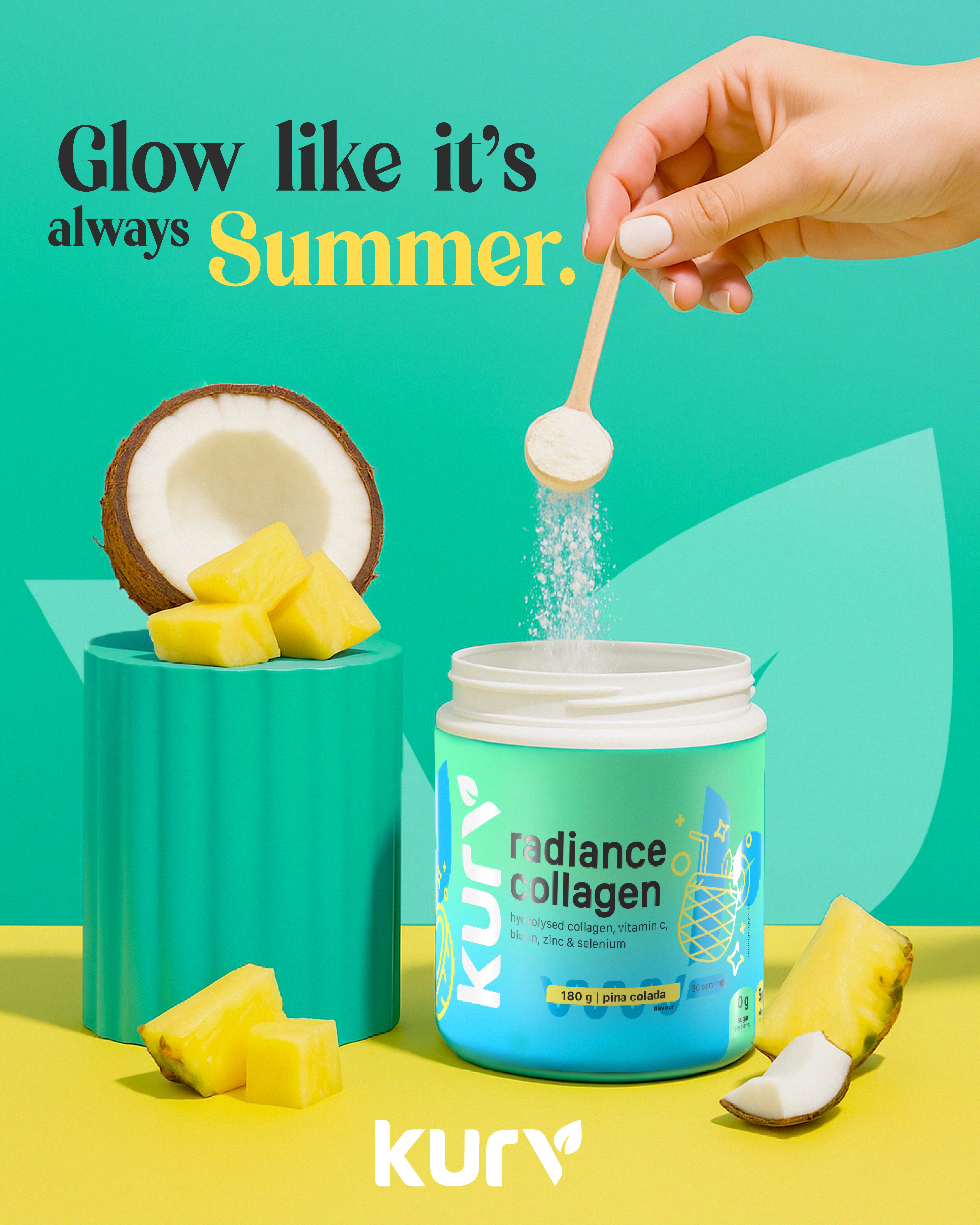 Kurv is a beauty and wellness supplement brand developed by USN and launched as a standalone consumer product. The work focused on establishing a confident, lifestyle-driven visual identity that could scale across packaging, campaigns, and digital platforms.